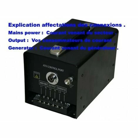 Dieses Gerät wird an den Stromgenerator angeschlossen (Letzterer muss einen kompatiblen ATS Anschluss haben). Es startet den Generator sobald das Stromnetz unterbrochen wird (z.B. Stromausfall). Wenn der Strom zurückkehrt, schaltet das Gerät ATS den Generator ab und wechselt wieder zum Stromnetz.