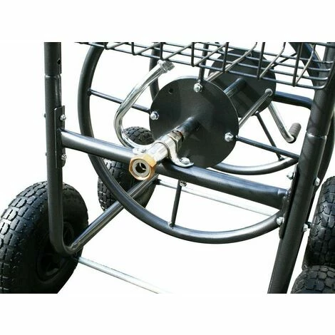 Durch die 4 Luftreifen ist es einfach, den Wagen zu rangieren. Sie können bis zu 90 Meter Schlauch auf den Wagen aufrollen. Der gewinkelte Schlauchanschluss verhindert das Verdrehen des Schlauchs.